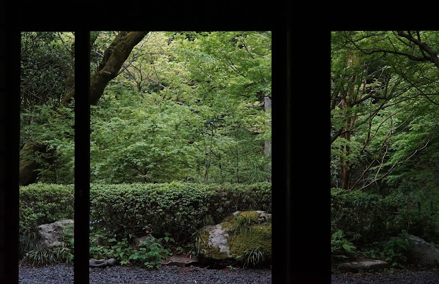 薄暗い室内から見る新緑は一幅の絵画のよう。